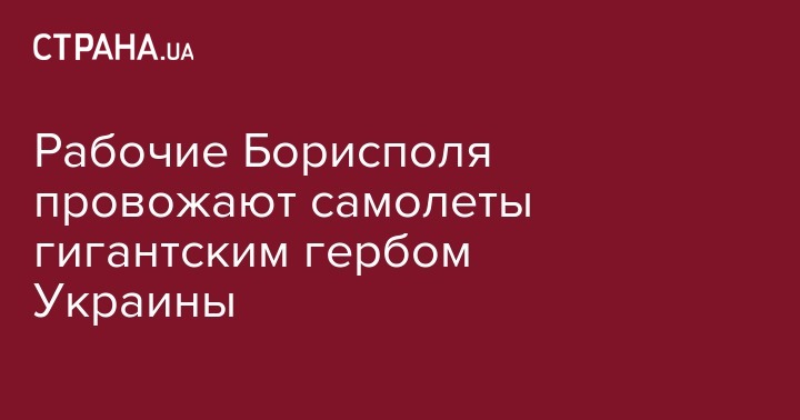 Рабочие Борисполя провожают самолеты гигантским гербом Украины