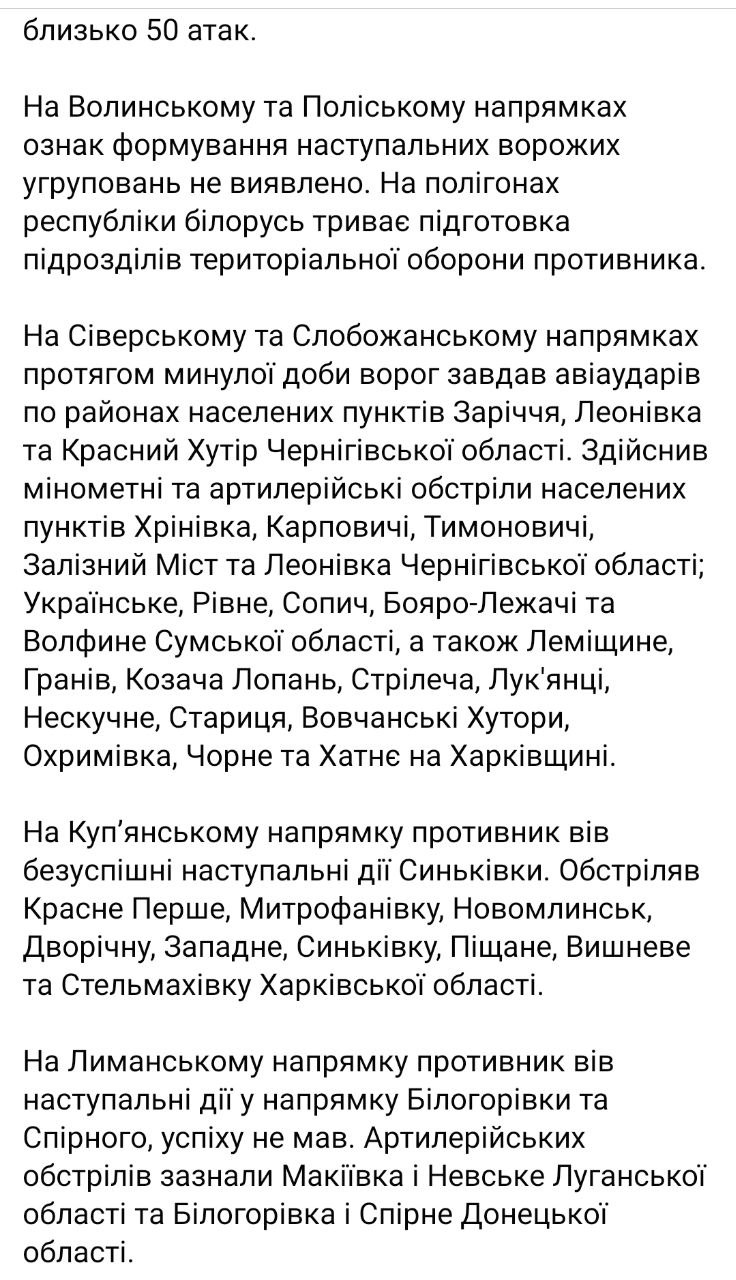 Об этом сообщается в утренней сводке Генштаба ВСУ.