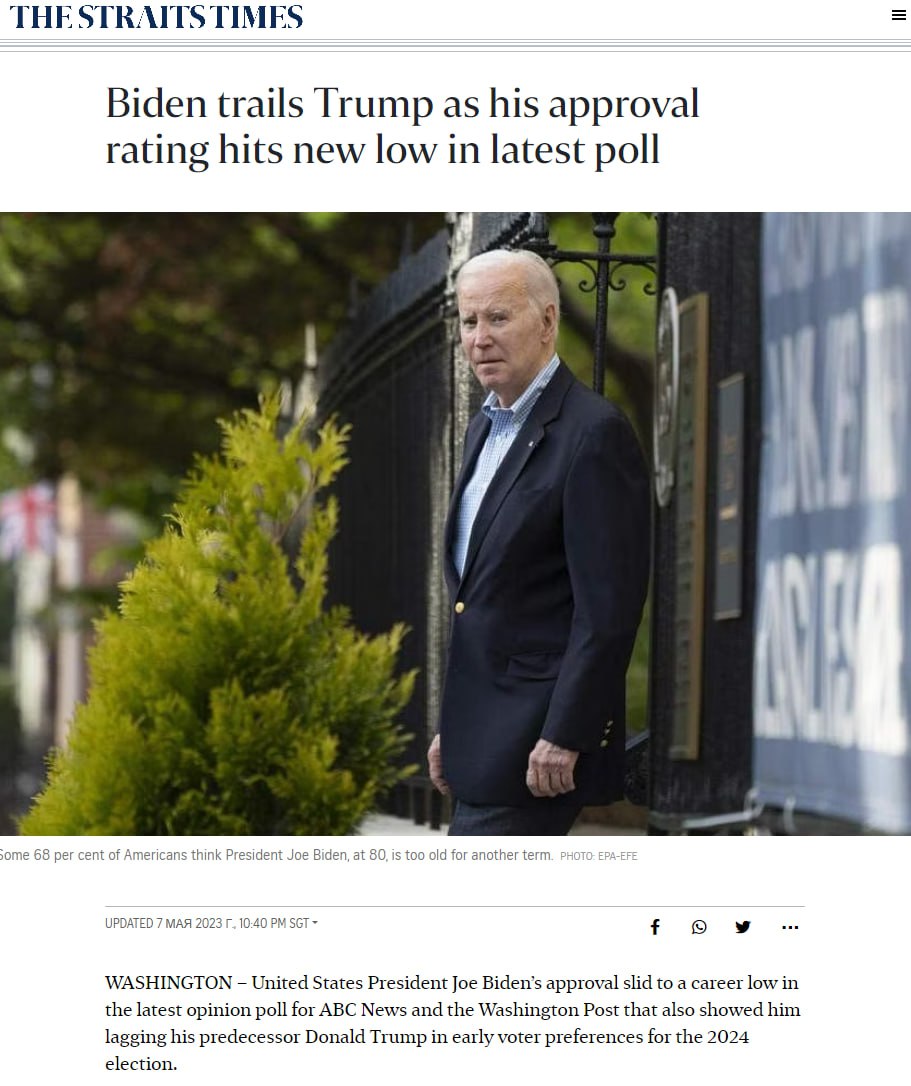 Напомним, что ранее мы писали, что рейтинг одобрения Байдена составляет 40% и он сильно рискует проиграть будущие президентские выборы в США.