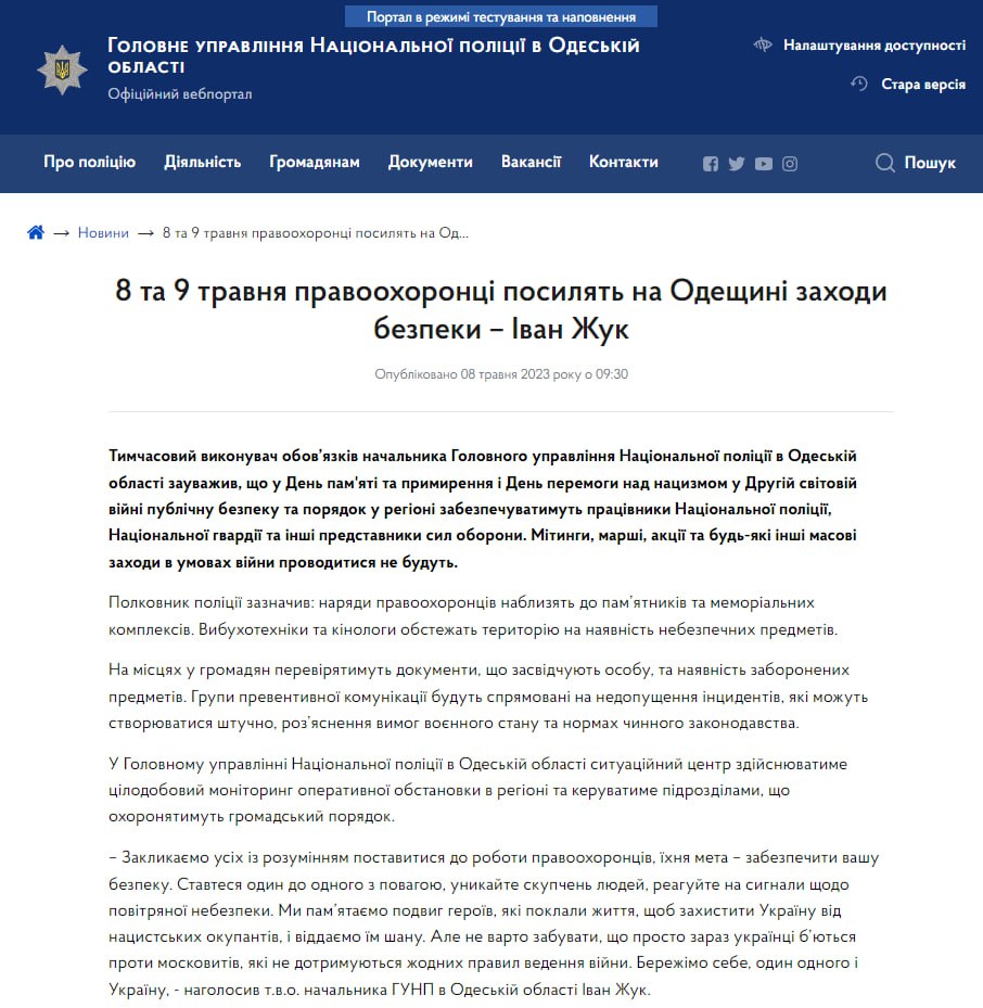 8 и 9 мая в Одесской области запрещены митинги, марши, акции и любые массовые мероприятия.