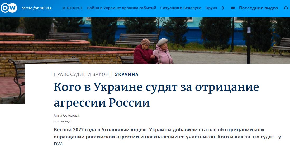В материале DW (Deutsche Welle) "Кого в Украине судят за отрицание агрессии России" говорится, что больше всего дел по отрицанию российской агрессии, касаются лайков в соцсетях, например, в российских "Одноклассниках".