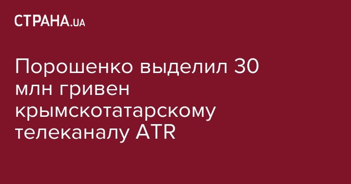 Президент Петр Порошенко подписал закон о бюджетном финансировании крымскотатарского телеканала "АТР" в размере до 30 миллионов гривен. Соответствующий закон (№ 5333) о внесении в Бюджетный кодекс Украины изменений касательно программ поддержки телерадиокомпаний Автономной Республики Крым и города Севастополя размещен на сайте парламента с подписью гаранта.