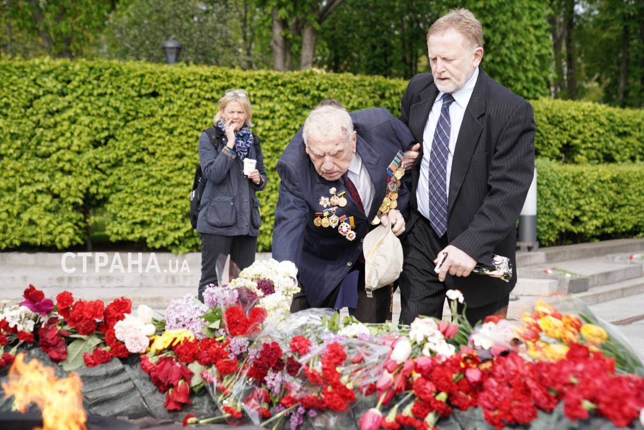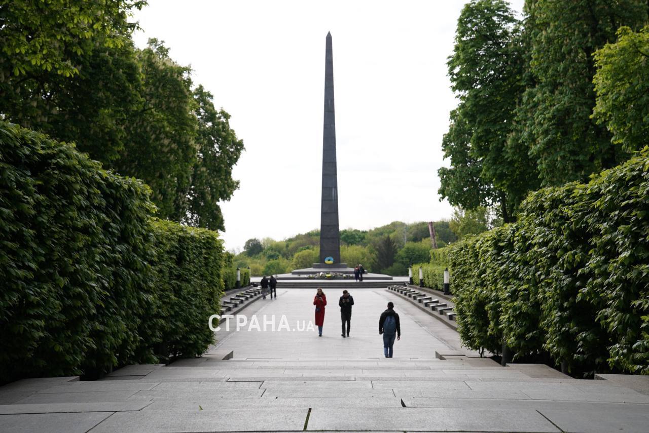 10.04 В Киеве сегодня, 9 мая, люди несут цветы в Парк Славы к Вечному огню.