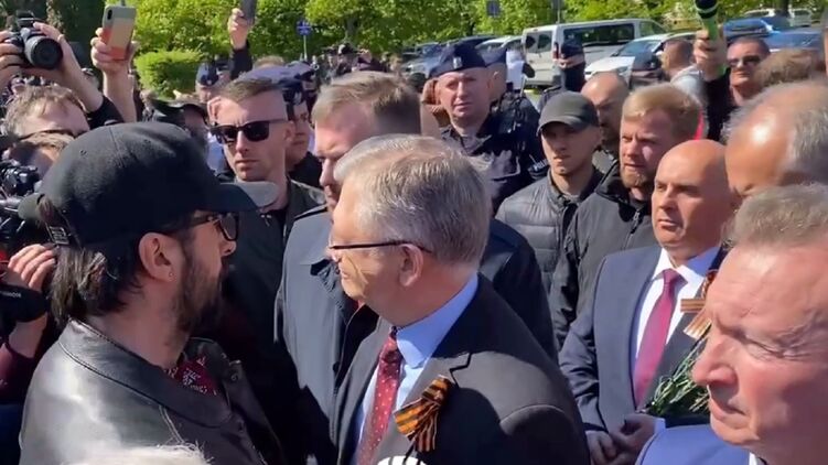 Судя по видео, которое публикуют российские СМИ, протестующие перекрыли проход послу и скандировали "фашисты/рашисты".