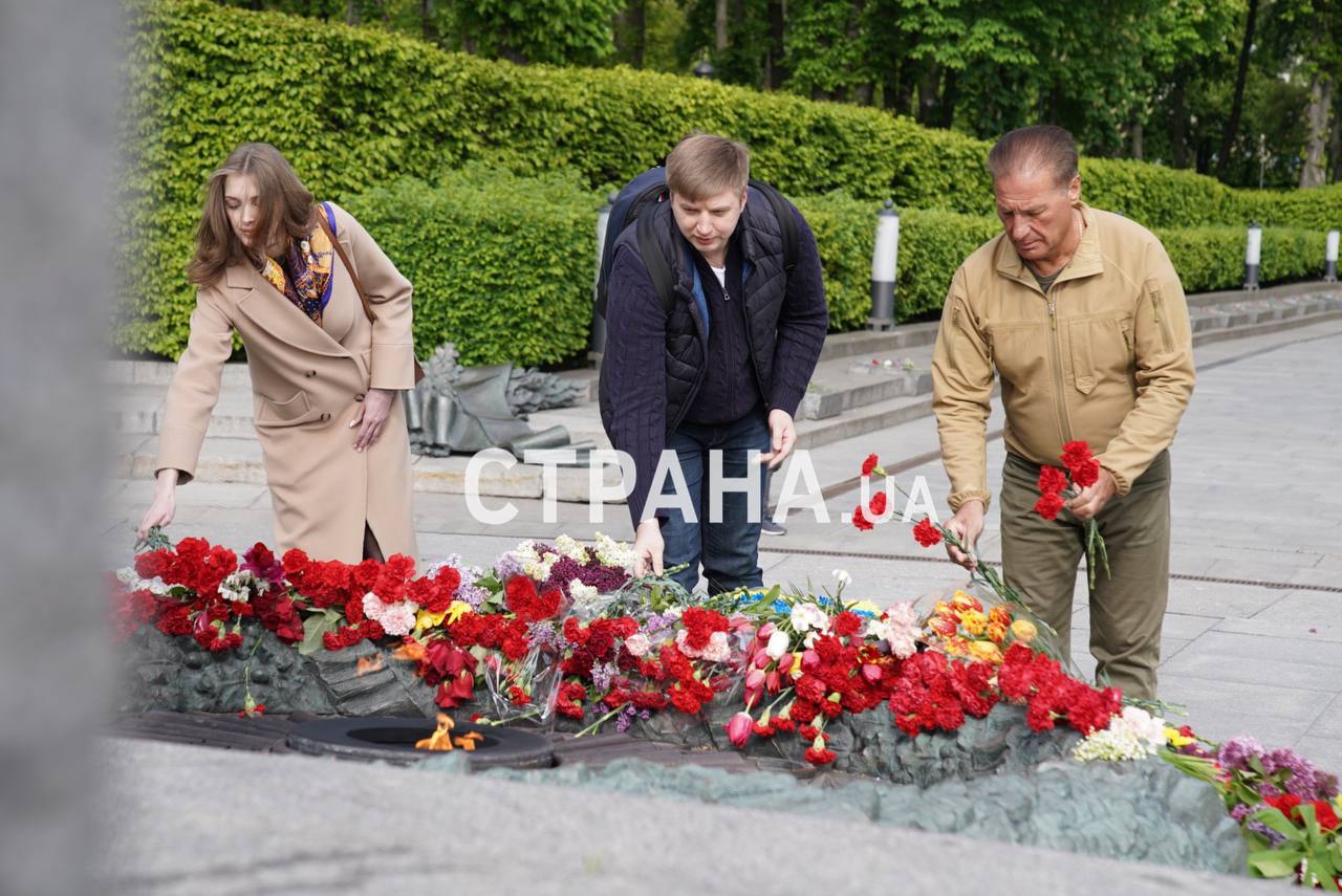 Киевляне тем временем несли цветы на Аллею славы в Киеве.