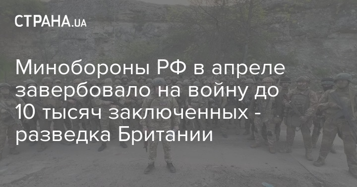 В апреле минобороны РФ завербовало на войну до 10 тысяч заключенных. С лета прошлого года заключенные были основным источником для пополнения у "Вагнера", но теперь, вероятно, ЧВК утратила доступ к пенитенциарной системе РФ в феврале 2023 года на фоне обострения отношений Пригожина и минобороны РФ.
