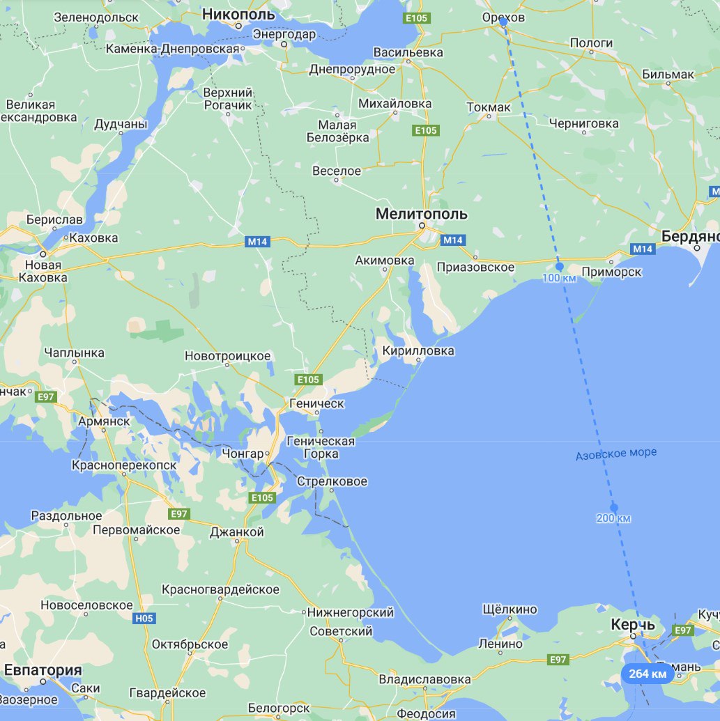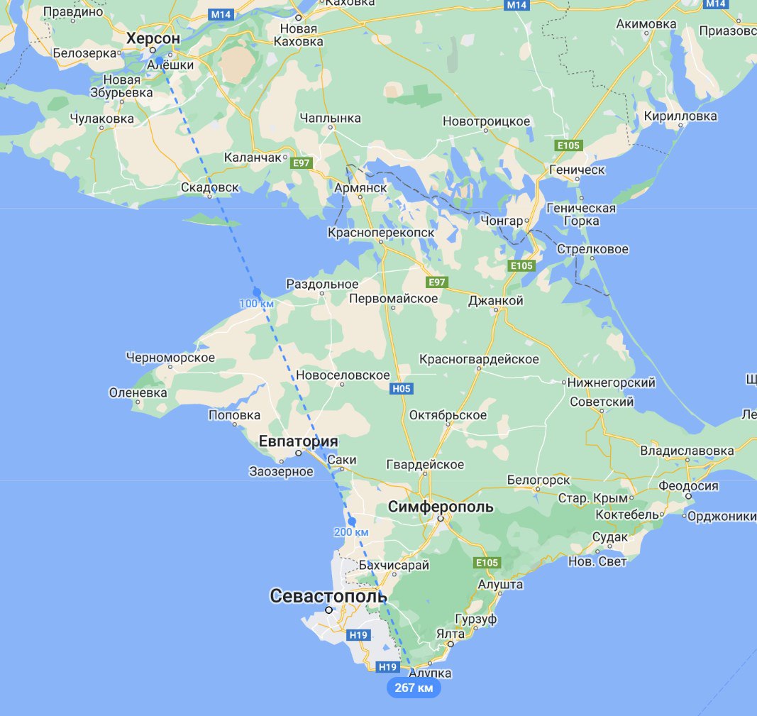 Этой дальности хватит, чтоб от линии фронта добить до Крыма, включая базу Черноморского флота РФ в Севастополе и Крымский мост.