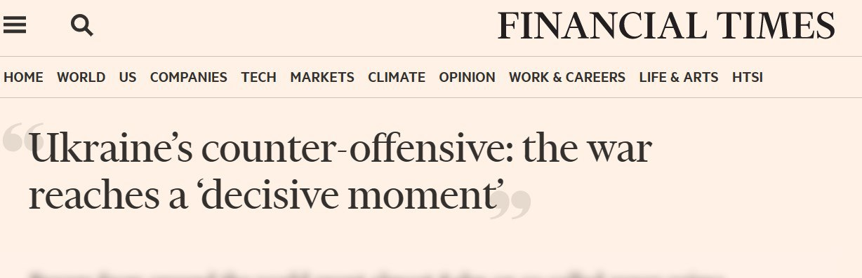 "Это решающий момент для нас. Уровень западной поддержки зависит от нашего успеха. Чем большего мы добьемся на поле боя, тем больше мы получим от партнеров", - говорит он.