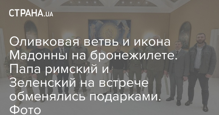 Оливковая ветвь и икона Мадонны на бронежилете. Папа римский и Зеленский на встрече обменялись подарками. Фото