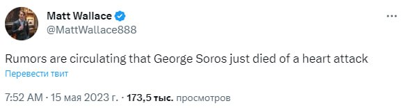 Уоллес ранее писал о том, что Сорос якобы вывел капиталы из Твиттера, после того как соцсеть купил Илон Маск.
