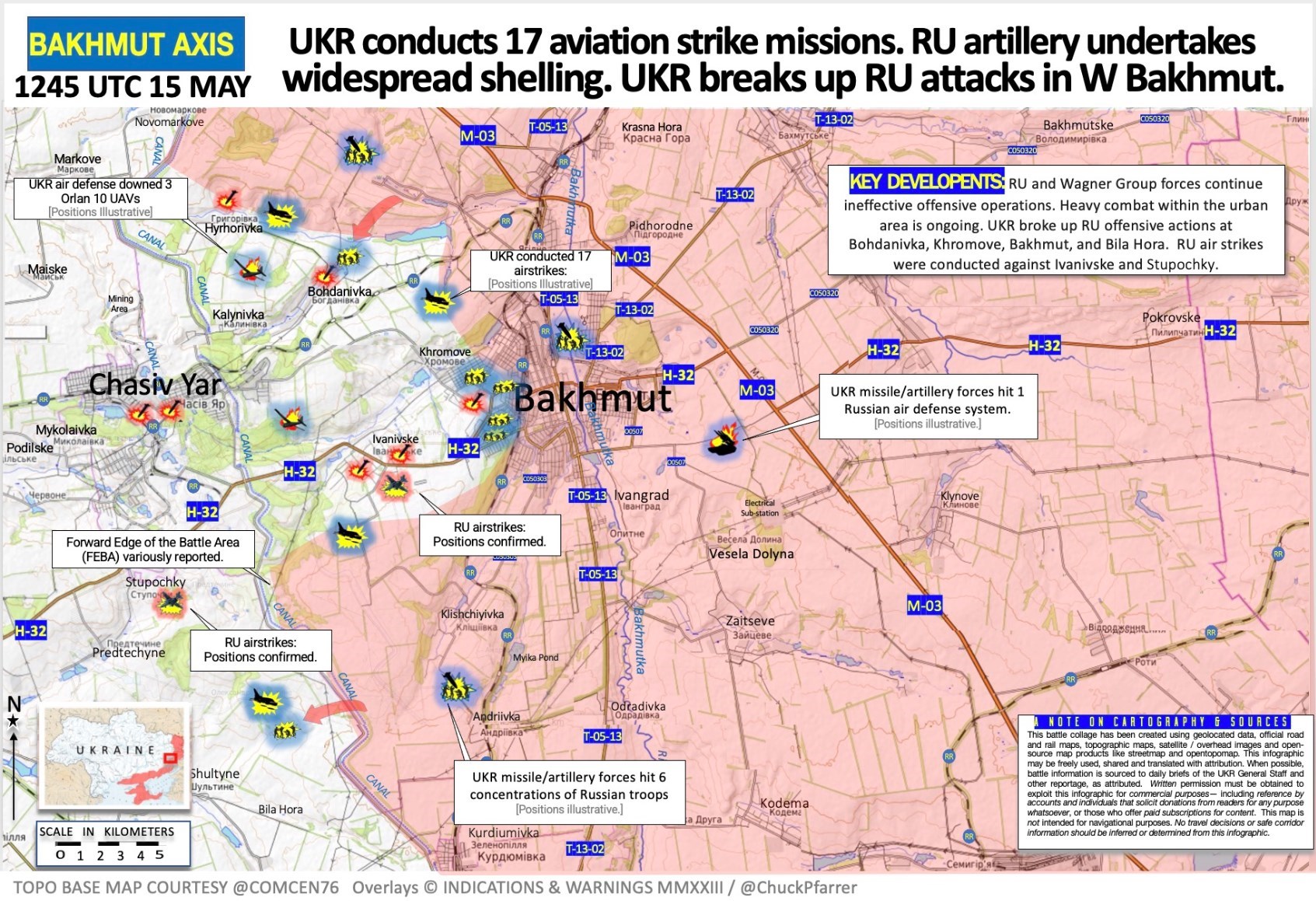 В то же время связанные с "Вагнером" российские телеграм-каналы, пишут, что российские войска утратили позиции в ивановском лесу - это около Клещеевки к югу от трассы Константиновка - Бамут. О том же вчера сообщали и украинские военные паблики. Также российские телеграм-каналы пишут, что ВСУ пытаются прорваться к западной части Клещеевки и взять этот населенный пункт, около которого находятся господствующие высоты, с которых можно обстреливать всю территорию к югу от Бахмута.