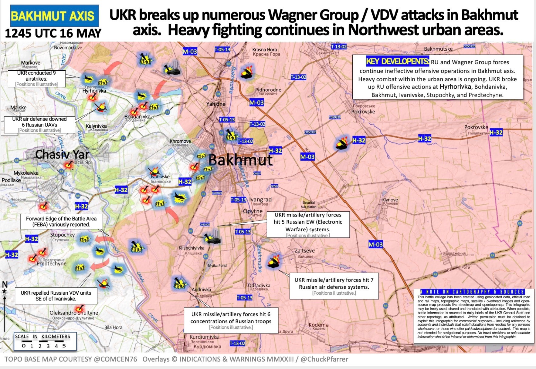 Что касается самого Бахмута, то Пригожин заявляет, что там "вагнеровцы" продолжают наступление и уже почти дошли до западных окраин города. Продвижение противника в городе, как видим, подтверждает и минобороны Украины, а также украинские военные паблики.