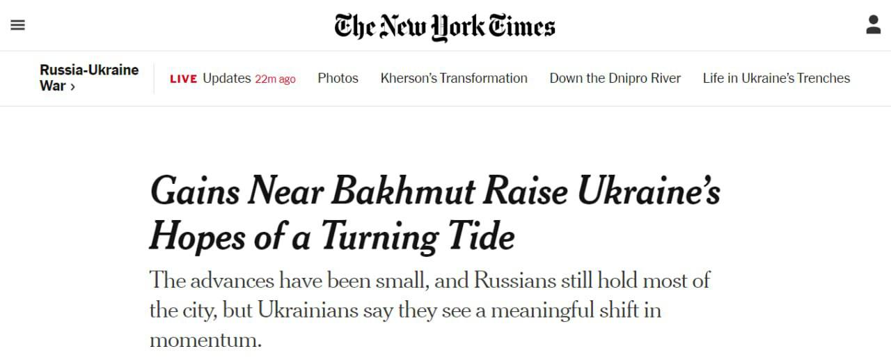 Успехи под Бахмутом укрепляют надежды Украины на переломный момент, пишет New York Times.