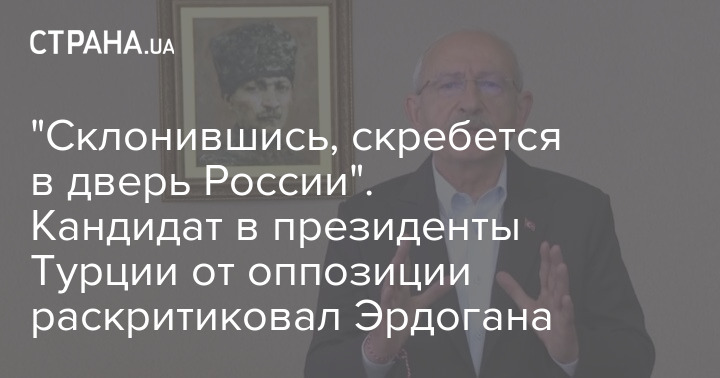 Лидер Народно-республиканской партии Турции и кандидат в президенты Кемаль Кылычдароглу назвал действующего президента Реджепа Тайипа Эрдогана "фальшивым лидером, который ориентируется на Россию, в дверь которой он, склонившись, скребется".