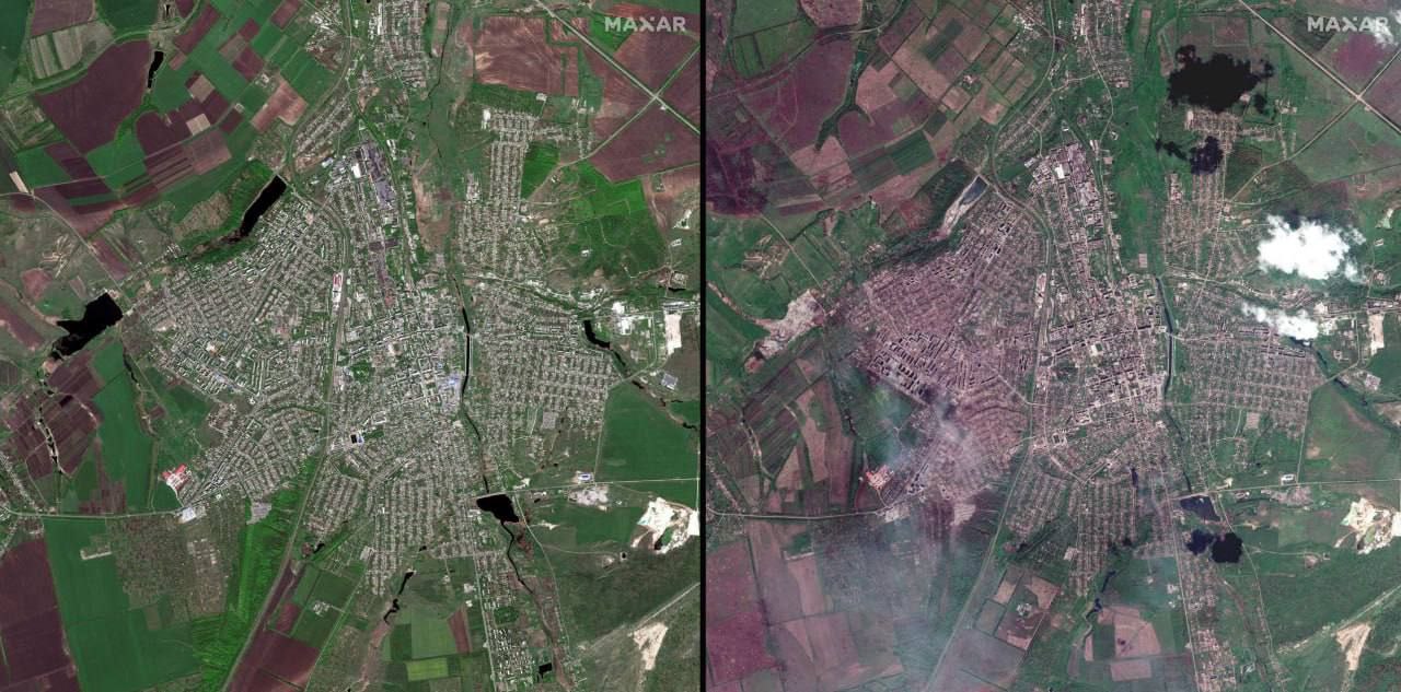 Снимки подробно показывают уровень разрушений. Компания Maxar заявила, что "районы жилых домов, школ, магазинов и другой инфраструктуры превратились в тлеющие обломки".