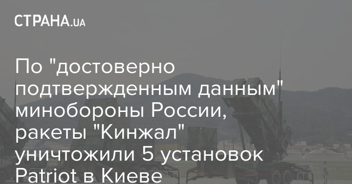 По "достоверно подтвержденным данным" минобороны России, ракеты "Кинжал" уничтожили 5 установок Patriot в Киеве