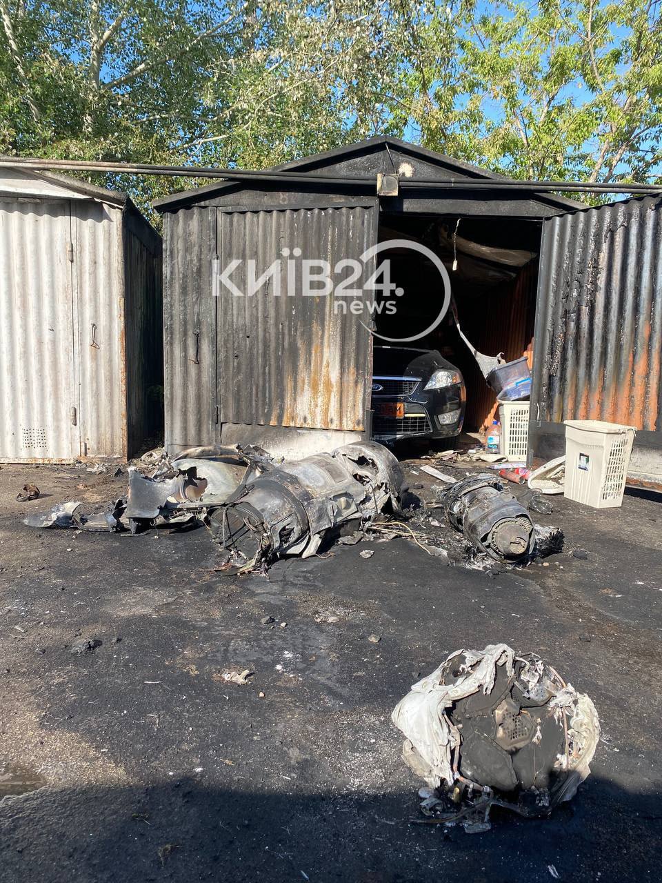 Телеграм-каналы публикуют фото и видео обломков ракет, которые упали в Дарницком районе Киева рано утром 18 мая.