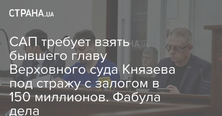 Специализированная антикоррупционная прокуратура (САП) требует взять под стражу экс-главу Верховного суда Всеволода Князева с возможностью внесения залога в размере 150 миллионов гривен.