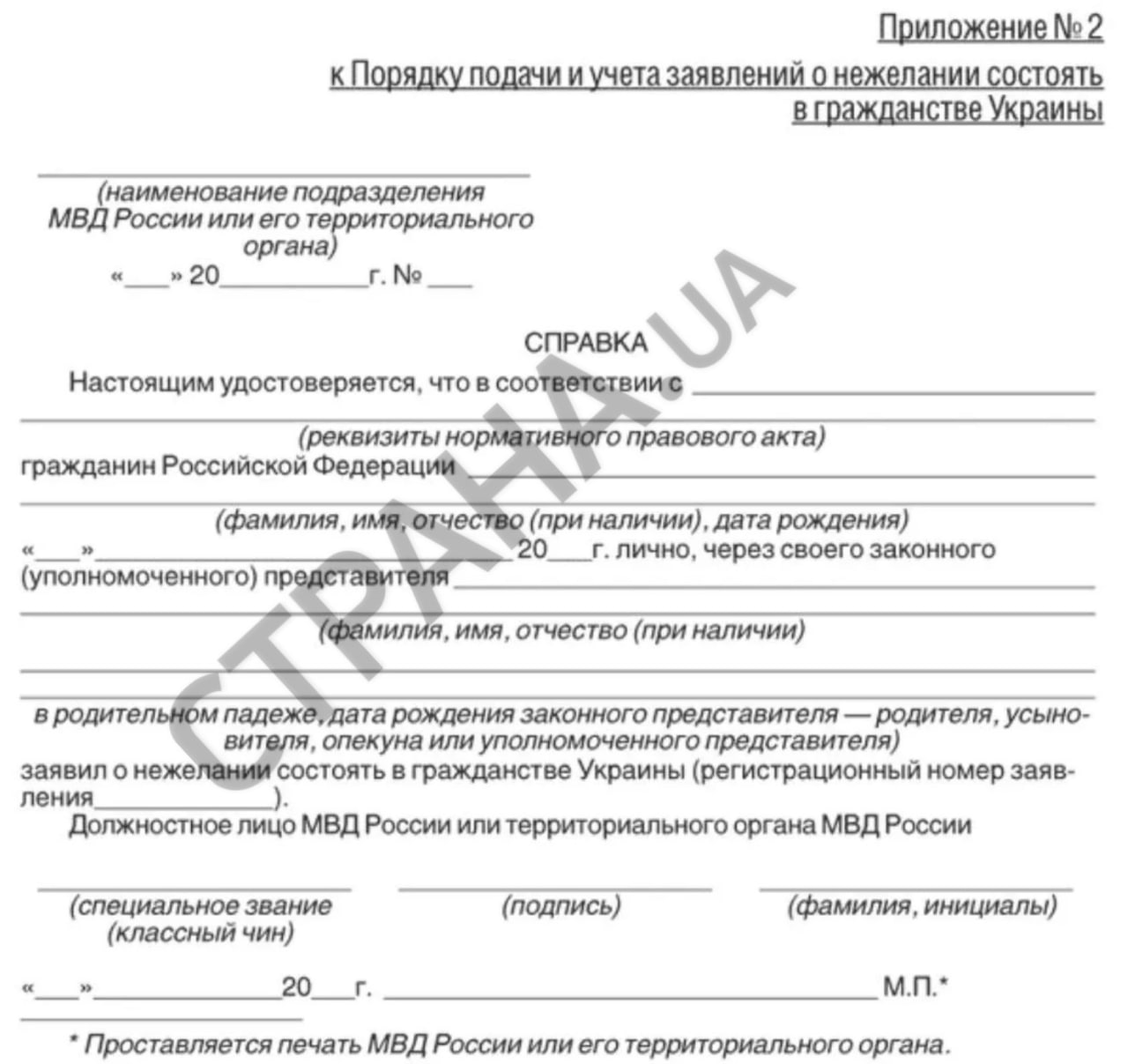 Взамен заявители получат справку о том, что они "не желают состоять в гражданстве Украины". В дальнейшем они должны будут предоставлять ее "по месту требования". Украинский паспорт при этом не изымается.