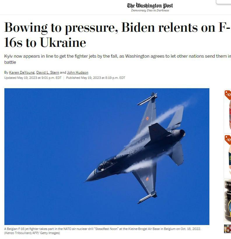 Ранее на брифинге в Хиросиме советник президента США Джо Байдена Джейк Салливан подробно остановился на теме предоставления Украине F-16. Судя по его заявлению, США не рассматривают эти истребители для Украины в ближайшей перспективе. И готовят их для "будущих" ВСУ.