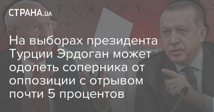 На выборах президента Турции Эрдоган может одолеть соперника от оппозиции с отрывом почти 5 процентов