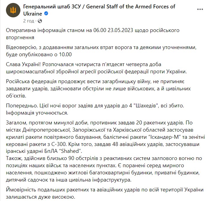 Война в Украине идет уже 454-й день. Мы следим за новостями 23 мая в своем онлайне.
