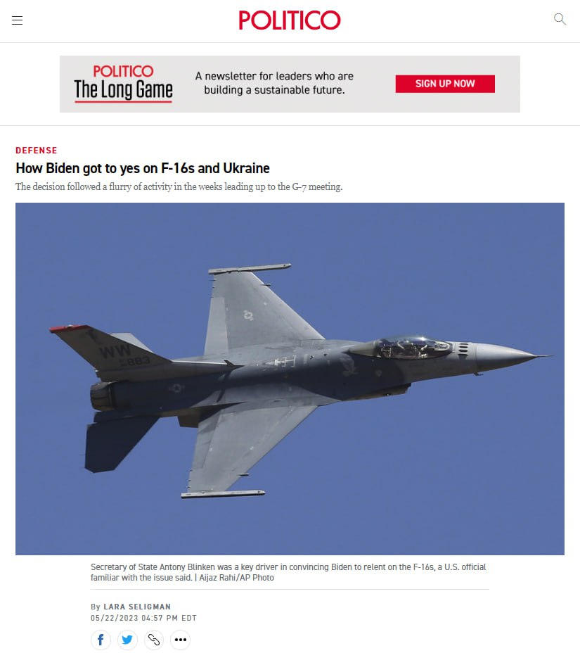 Напомним, вчера министр ВВС США Фрэнк Кендалл заявил, что США планируют в ближайшие месяцы отправить истребители F-16 в Украину.