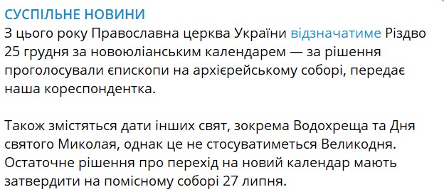 Между тем в отдельных епархиях ПЦУ раньше перешли на новый стиль. Так, в Одесской епархии ПЦУ решили отмечать Рождество 25 декабря. Такое решение было принято после предварительного опроса священнослужителей в храмах Одесской области.