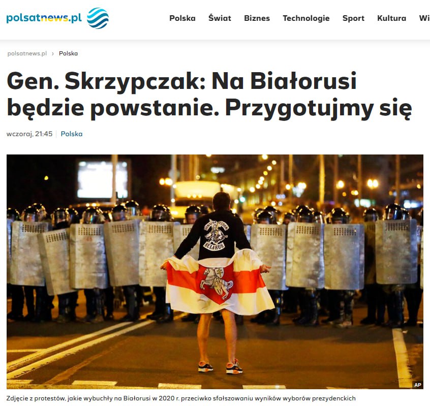 Польский генерал Вальдемар Скшипчак заявил, что Польша готовится к вооруженному перевороту в Беларуси и участию в его поддержке военным путём.