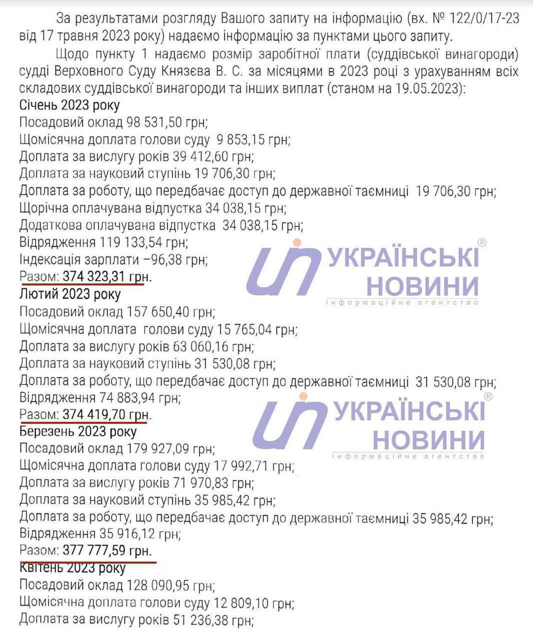 В январе, феврале, марте и апреле он получал по 374 тысяч гривен.