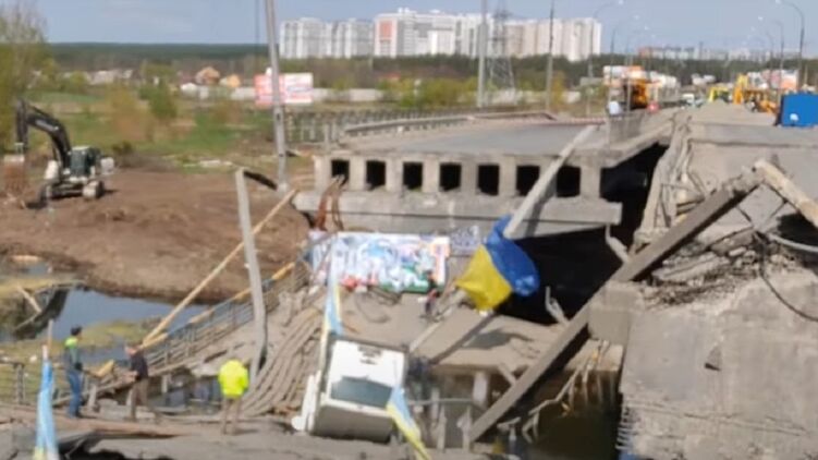 Разрушенный в марте 2022 года мост в Ирпене. Иллюстративный кадр