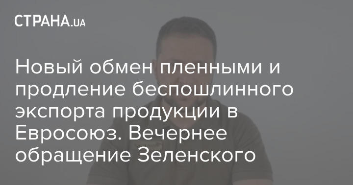 Новый обмен пленными и продление беспошлинного экспорта продукции в Евросоюз. Вечернее обращение Зеленского