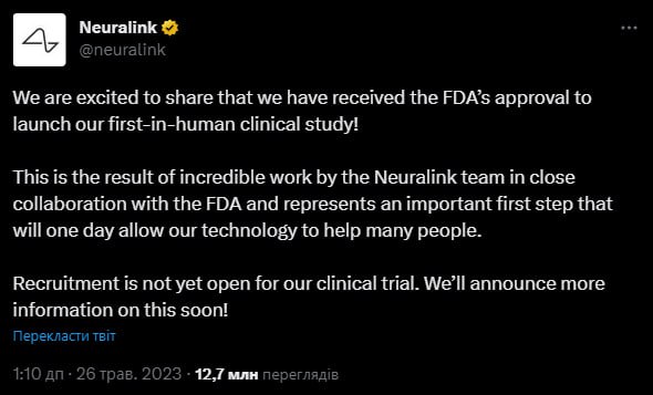 В декабре 2022 года Маск обещал вживить первому человеку чип для использования компьютера и телефона без помощи рук в течение полугода. Также Neuralink уже работает над глазными имплантами, позволяющими восстановить зрение и решениями, способными восстановить подвижность пациентов с повреждённым спинным мозгом.