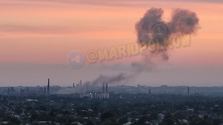 В сети появилось видео столба дыма в Мариуполе после взрыва.