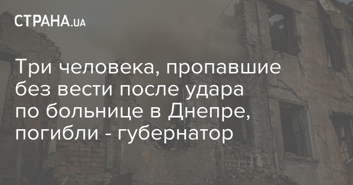 Трое человек, пропавшие без вести после ракетного удара по медучреждению Днепра, погибли. Об этом сообщил губернатор области Сергей Лысак.