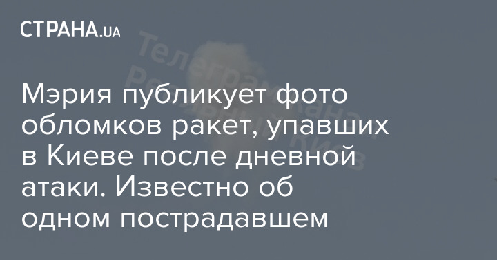 Мэрия публикует фото обломков ракет, упавших в Киеве после дневной атаки. Известно об одном пострадавшем