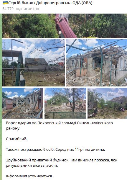 В понедельник, 29 мая, россияне ударили по Покровской громаде Синельниковского района Днепропетровской области. Есть погибший.