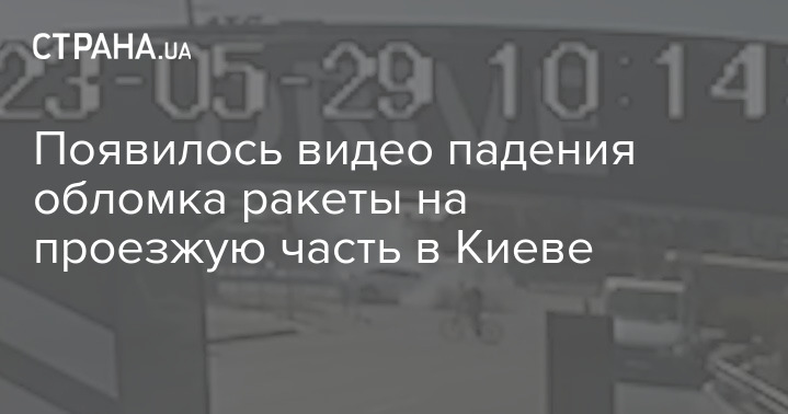 В сети появилось видео падения обломка ракеты на проезжую часть в Киеве во время сегодняшней дневной атаки.