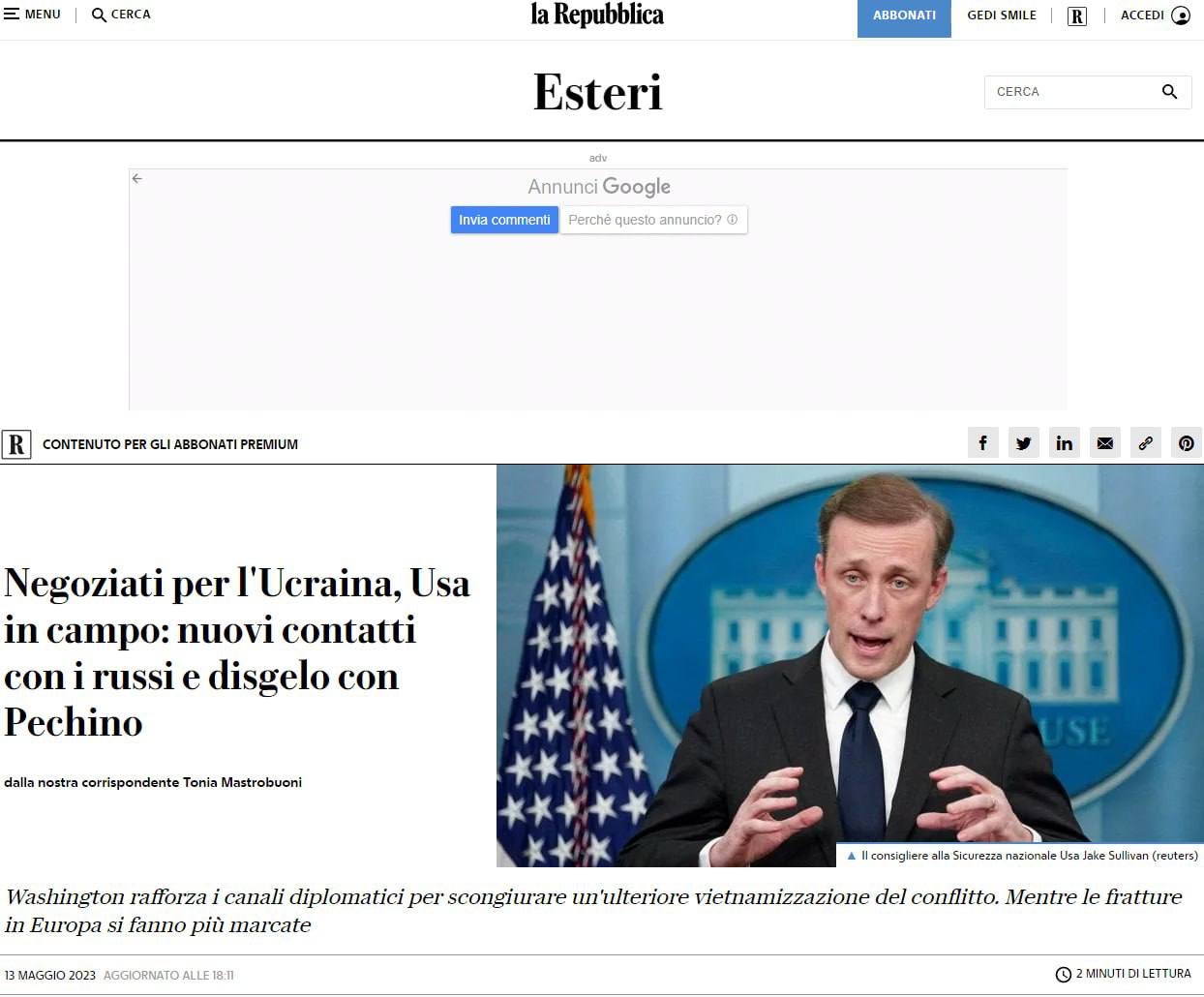 Об этом пишет итальянская газета La Repubblica.