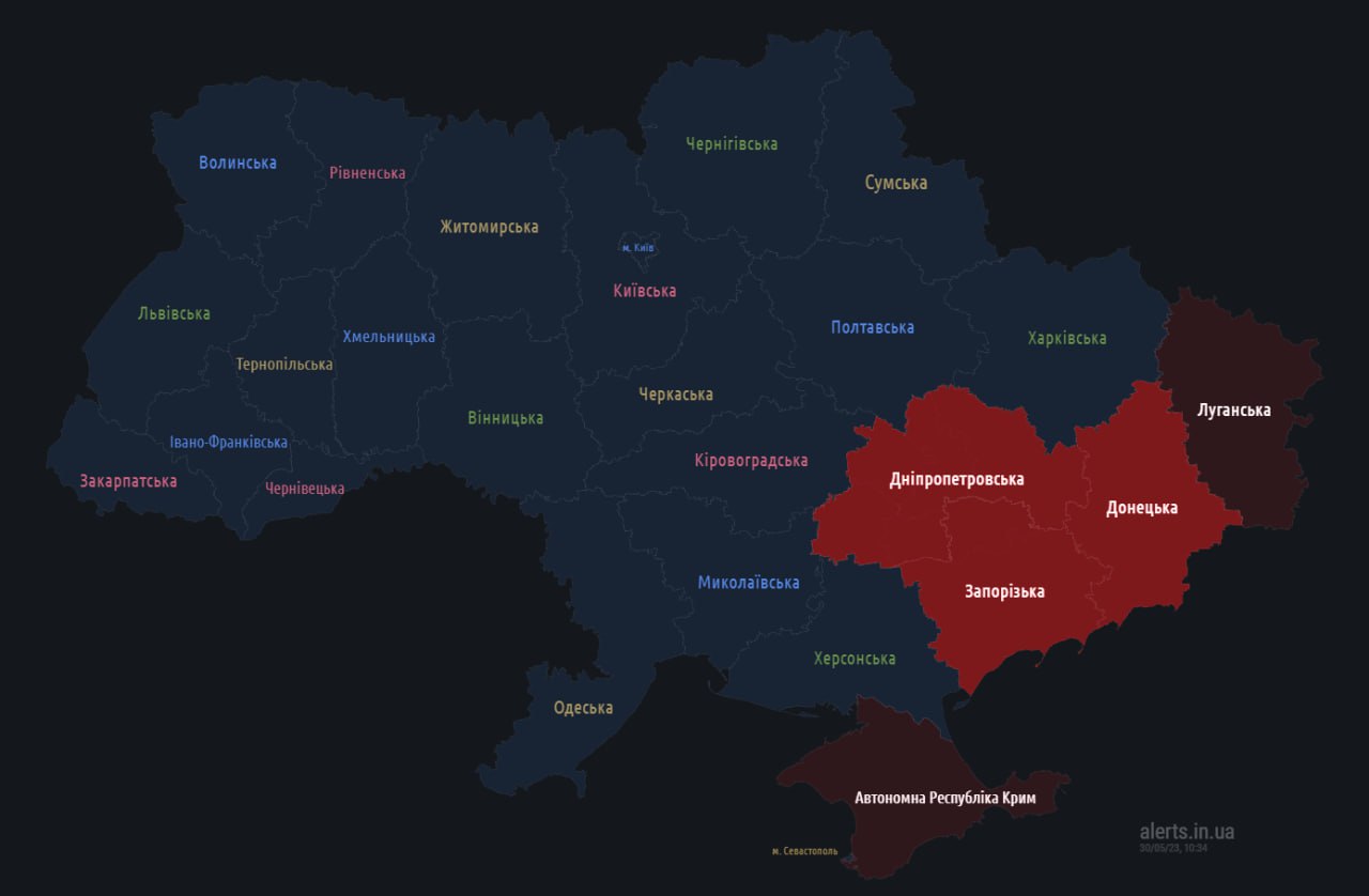 18.30 Воздушная тревога в Запорожской и Днепропетровской областях.
