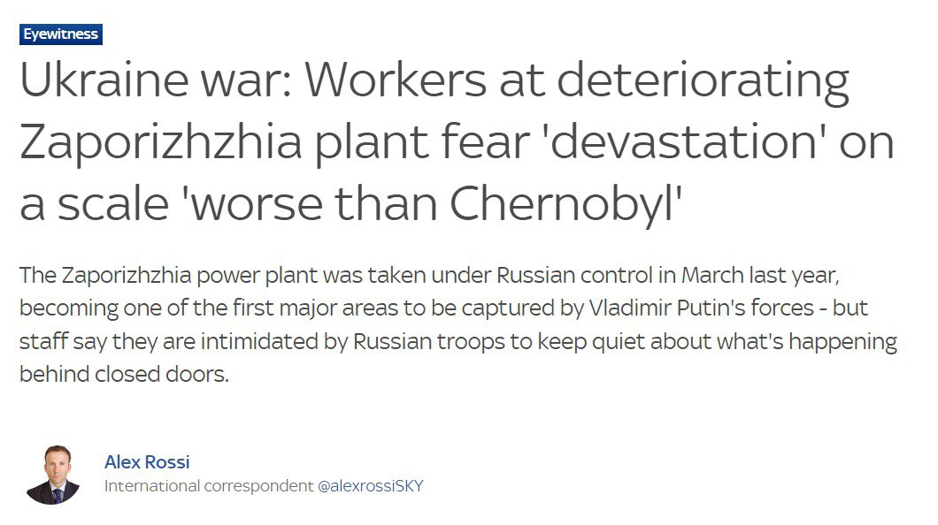 Такое мнение высказали телеканалу Sky работники ЗАЭС, которых опросили журналисты.