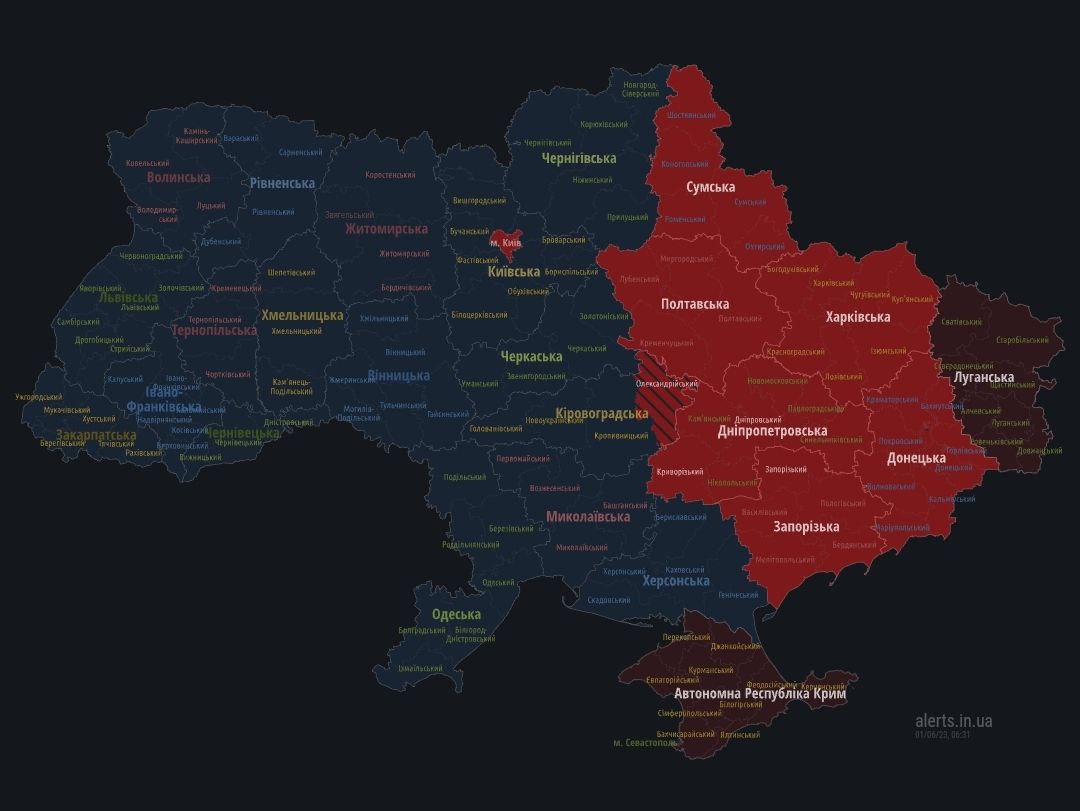 07.35 Воздушная тревога в Киеве и всей восточной части Украины.