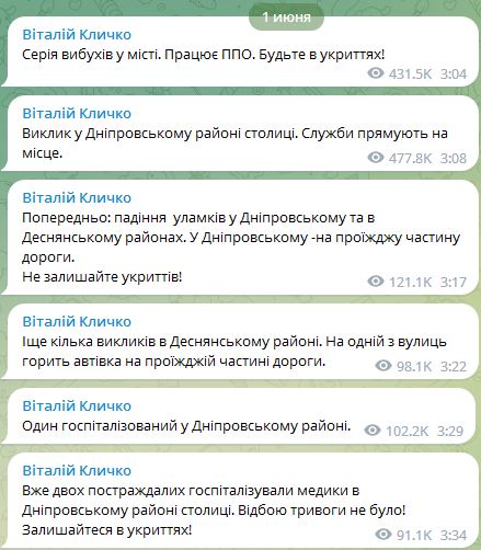 Раненых в Днепровском и Деснянском районах, по данным медиков, на утро было 14 человек. Девять госпитализировали. Пятеро получили помощь на месте.