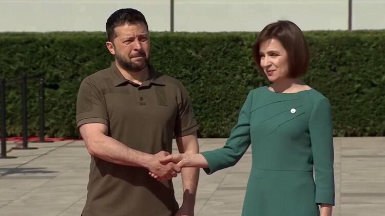 Кроме того, появилось фото прибытия Владимира Зеленского в Кишинев, где его встретила президент Молдовы Майя Санду.