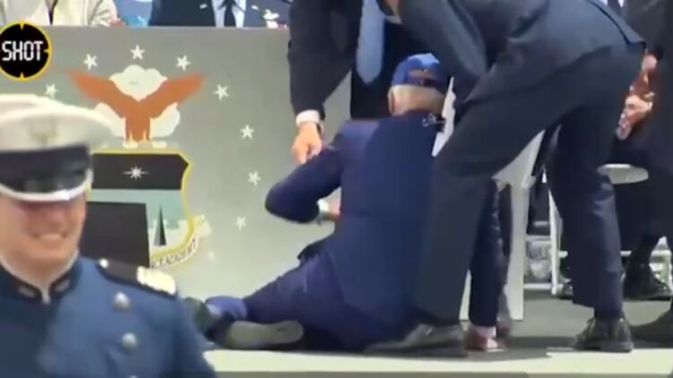 Президент США Джо Байден потерял равновесие и упал на пол во время церемонии вручения дипломов в Академии ВВС в Колорадо.