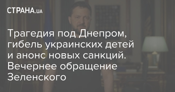 Трагедия под Днепром, гибель украинских детей и анонс новых санкций. Вечернее обращение Зеленского