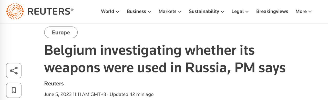 «Наше министерство обороны и его разведывательные органы начали расследование и просят предоставить информацию, чтобы выяснить, что именно произошло. Европейское оружие поставляют в Украину при условии, что его будут использовать на украинской территории для защиты этой территории. И у нас строгий контроль, чтобы убедиться, что это так», — заявил бельгийский премьер в эфире Radio 1.