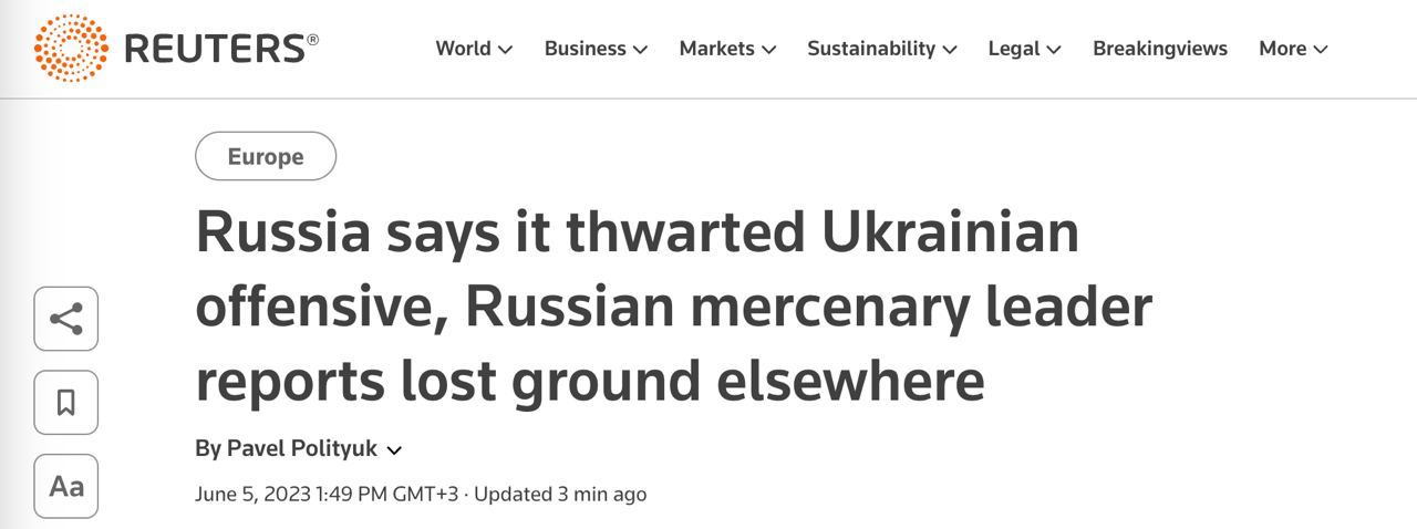 Украина наступательных действий не подтверждала. Армейское Управление стратегических коммуникаций с утра выпустило заявление, что любые российские данные о контрнаступлении ВСУ могут быть фейком.