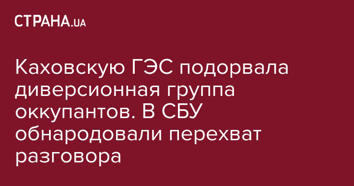 В СБУ сообщили, что их перехват телефонного разговора подтверждает, что Каховскую ГЭС взорвала диверсионная группа со стороны РФ.