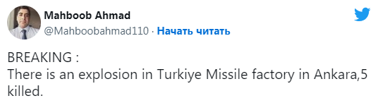 "На заводе ракетно-взрывчатых веществ в районе Эльмадаг в Анкаре произошел взрыв. В результате взрыва погибли 5 наших работников. Было начато судебное и административное расследование", – сообщили в Минобороны.